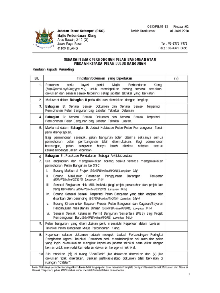 Senarai Semak Permohonan Pelan Bangunan Atau Pindaan Kepada Pelan Lulus Bangunan Pdf